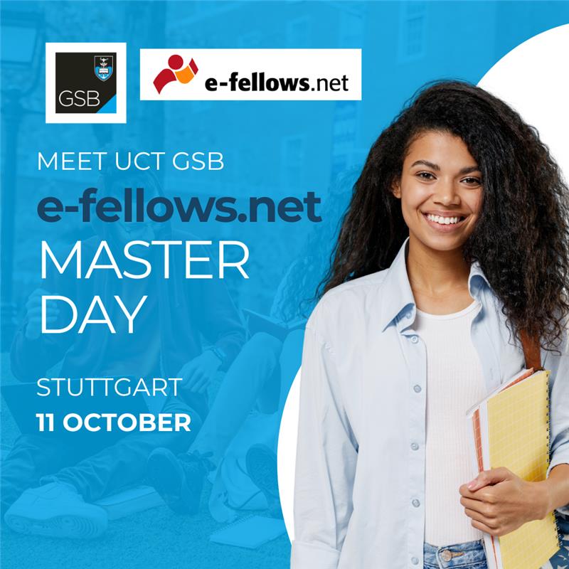 Join us at the Stuttgart E-fellows Masters Day to find out more about the Masters programmes offered by UCT GSB. This is a great opportunity to connect with our CEMS MIM Director Annika Surmeier who will be ready to answer any questions about the programmes, the School and the UCT GSB experience.