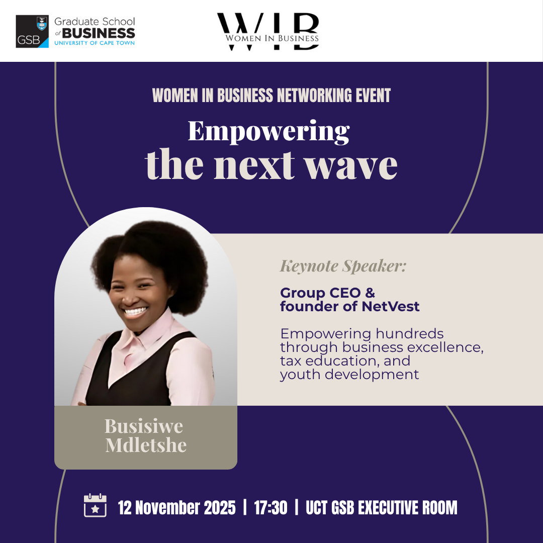Whether you're a current student, alumna, or network partner, this is your opportunity to be part of a legacy that's been empowering women in business for over 25 years. Learn more here: https://www.gsb.uct.ac.za/women-in-business/